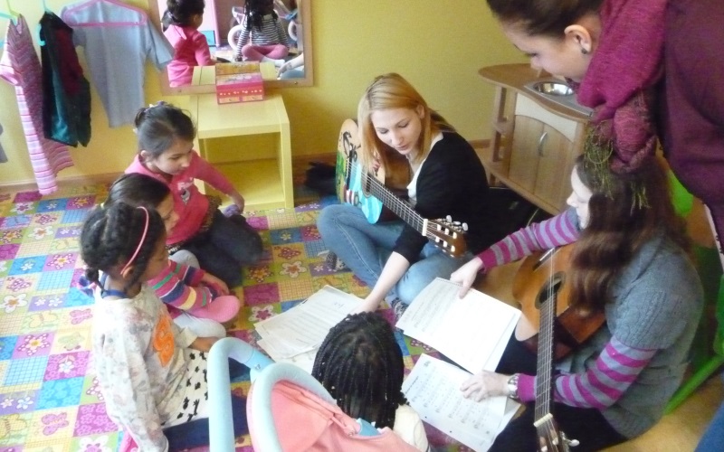 Wir integrieren Musik und Gesang in unseren Tagesablauf, beispielsweise in unserem „Morgenkreis“ oder beim Spielen.