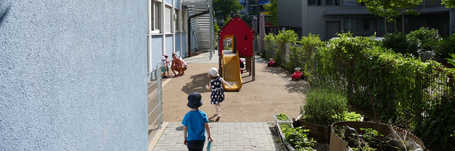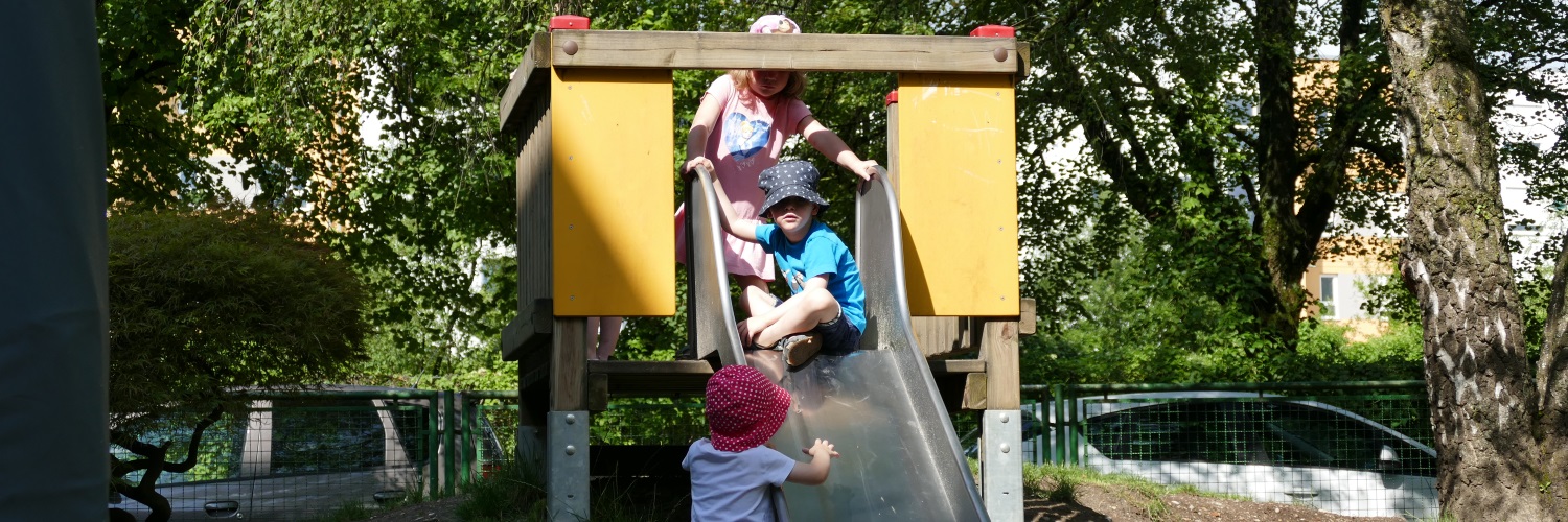 Unsere Einrichtungen verfügen über großzügige Außenbereiche, die Kinder zum Spielen und Entdecken einladen. Dabei erlernen Sie spielerisch motorische und soziale Kompetenzen an den vielfältigen Spielgeräten wie Rutsche, Sandkasten, Rollerbahn, Matschtisch, Kletterwand und Kräuterbeet. Spielplätze in der Nähe bieten den Kindern ein Ausflugsziel zum Spielen und Spazierengehen im Grünen. Die nahegelegenen Bus- und Bahnverbindungen ermöglichen uns auch außerhalb der KITA spannende Ausflugsziele zu erreichen.